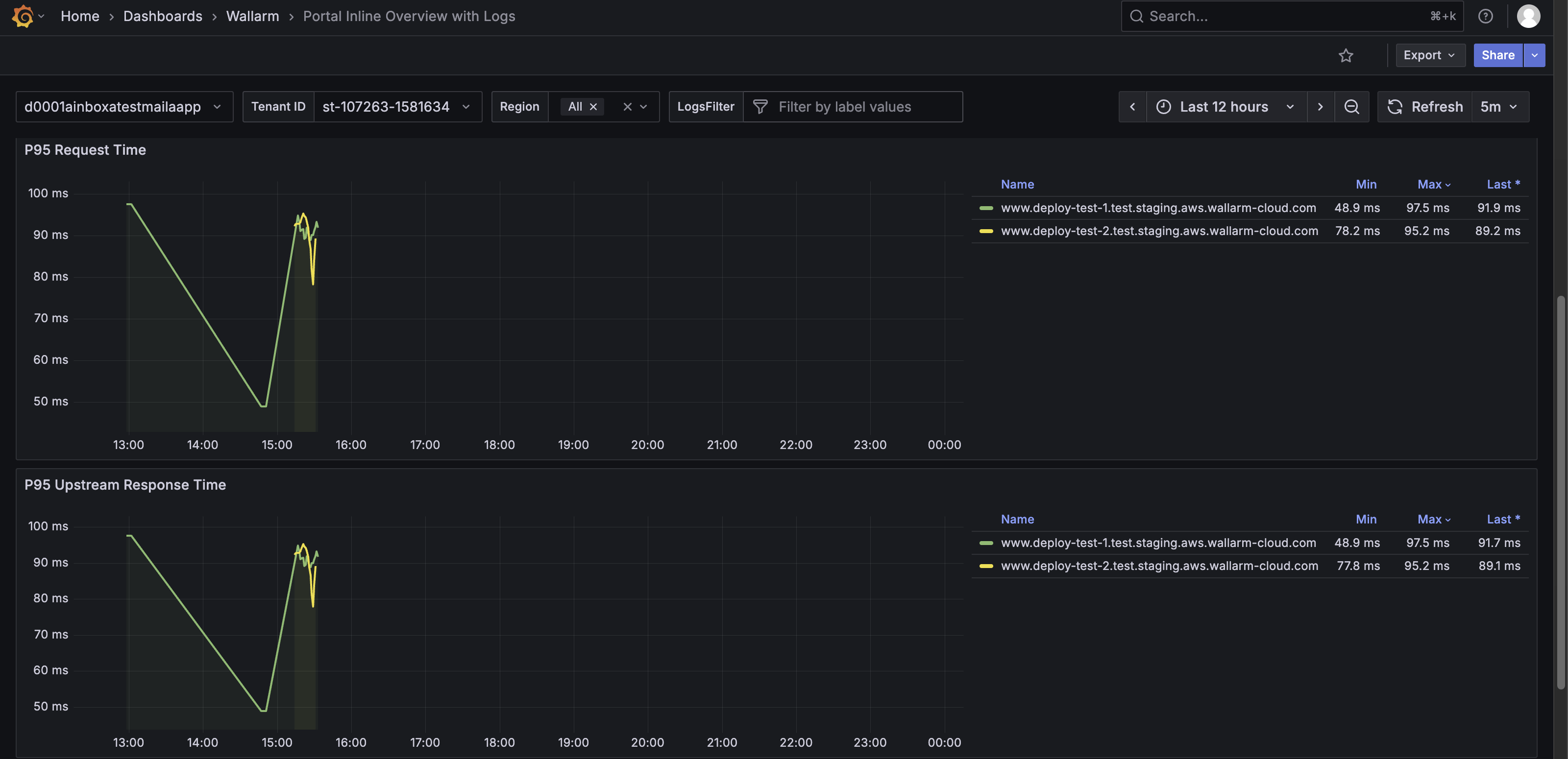 To quickly view NGINX error and access logs without additional metrics, use the dedicated Portal Inline NGINX Logs dashboard.